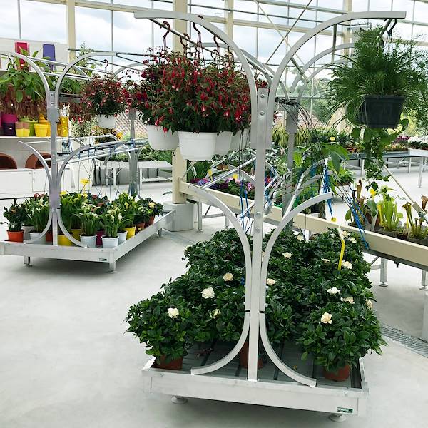 Chiringuito to innowacyjny stojak, który zapewni odpowiednią ekspozycję koszy w każdym otoczeniu: szklarniach, szkółkach, centrach ogrodniczych i kwiaciarniach. Jest odporny na warunki atmosferyczne i może być bez ograniczeń stosowany na zewnątrz. Konstrukcja wykonana jest z aluminium i zabezpieczona systemem antyprzechyłowym: kosze można ustawić na 2 różnych poziomach na łukowatej konstrukcji bez ryzyka przeciążenia.