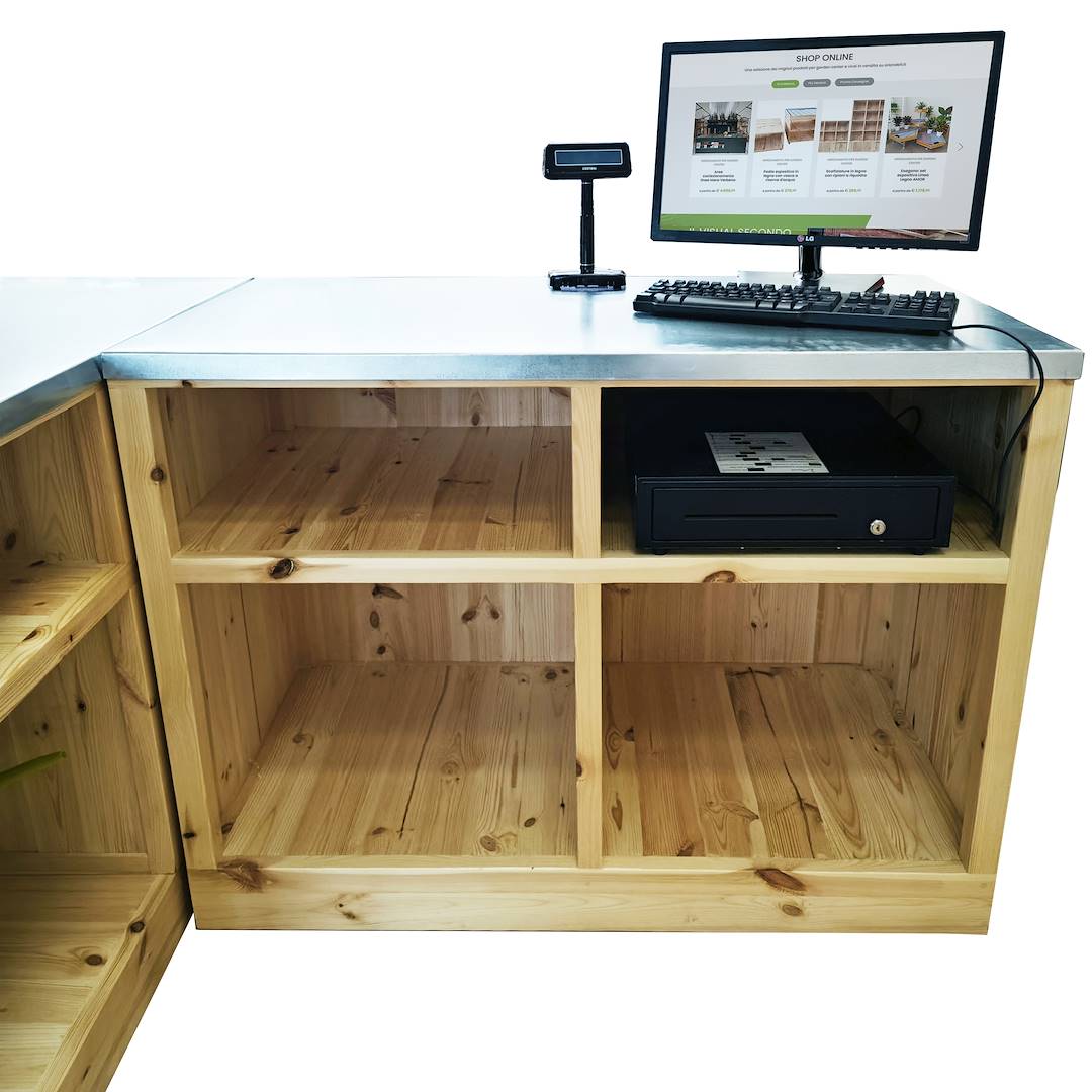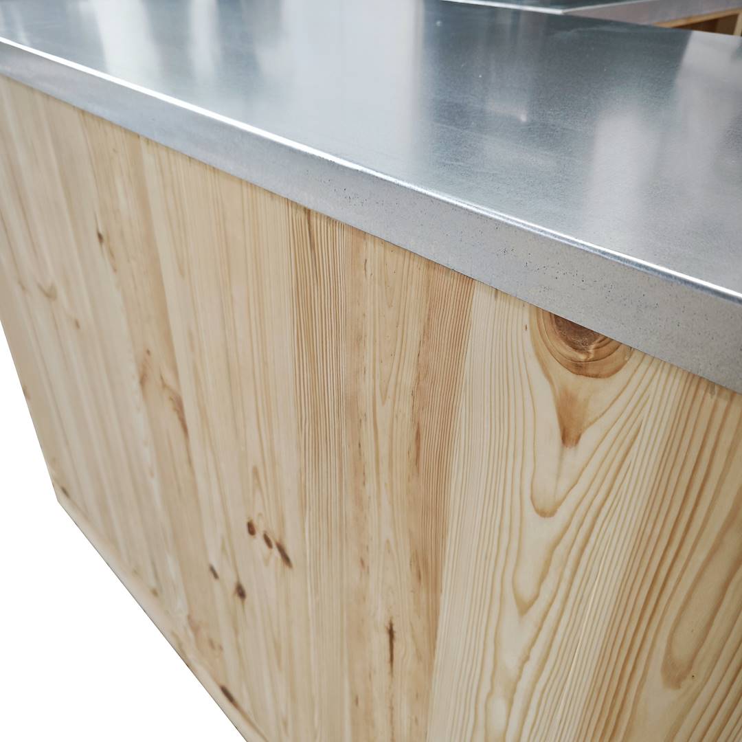 Modułowa drewniana kasa z ocynkowanym blatem